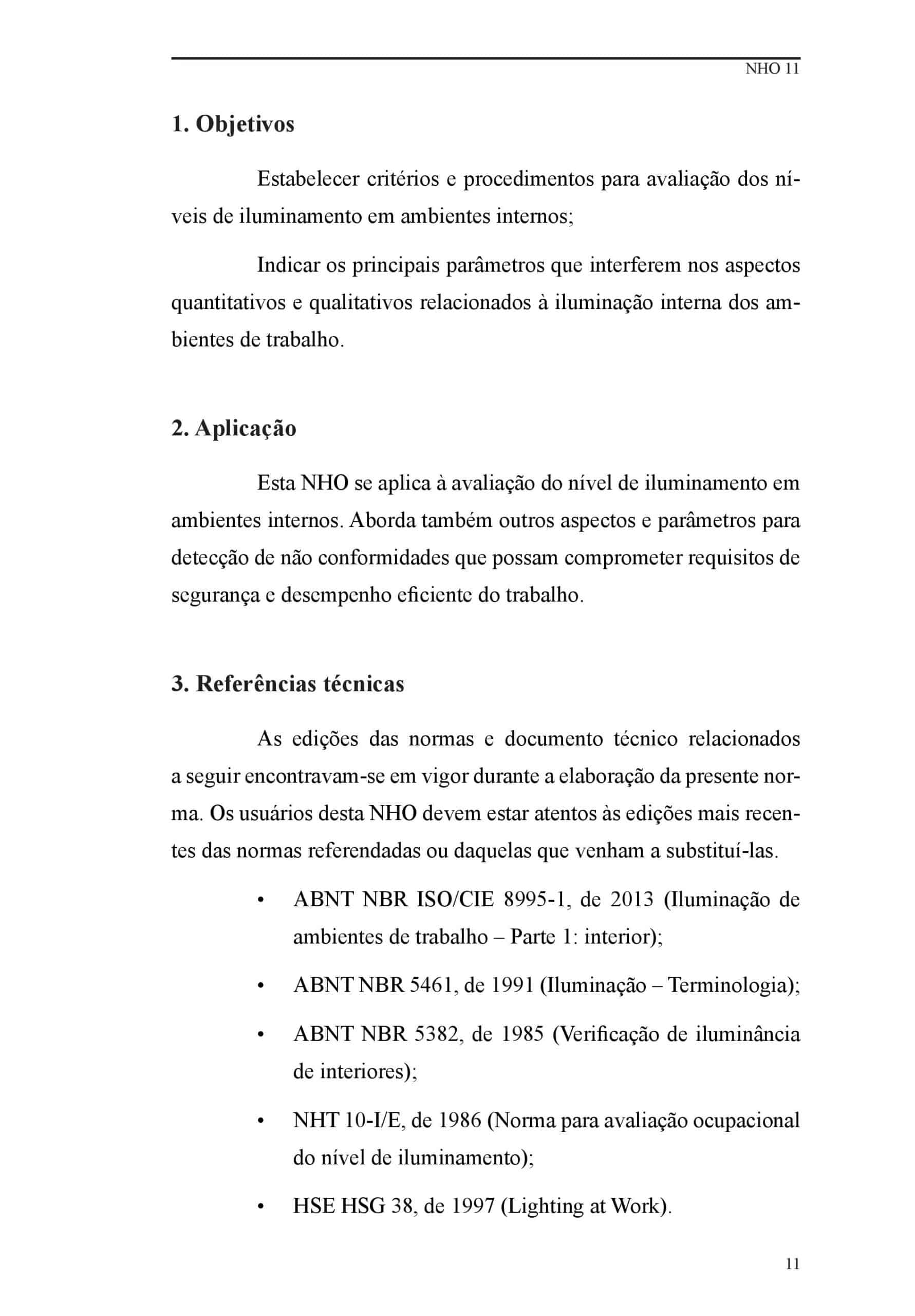NHO 11- Avaliação dos Níveis de Iluminamento em Ambientes Internos de Trabalho – 2ª Edição