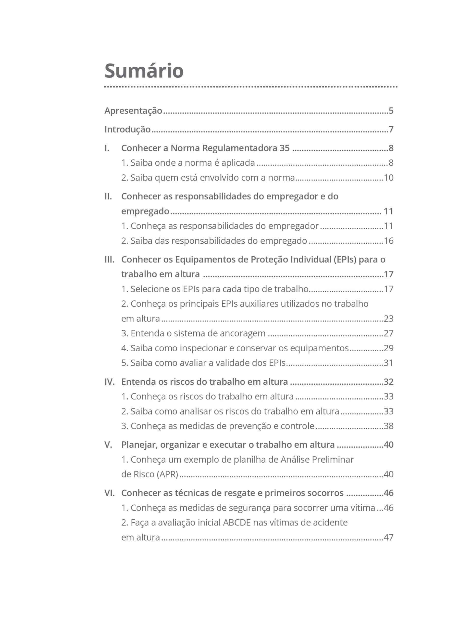 Este material é essencial para que o produtor rural conheça os pontos principais da gestão da segurança e saúde no trabalho em altura, além de entender os riscos envolvidos e como evitá-los, independentemente do local em que o trabalhador rural esteja inserido (campo, galpões, armazéns, entre outros).