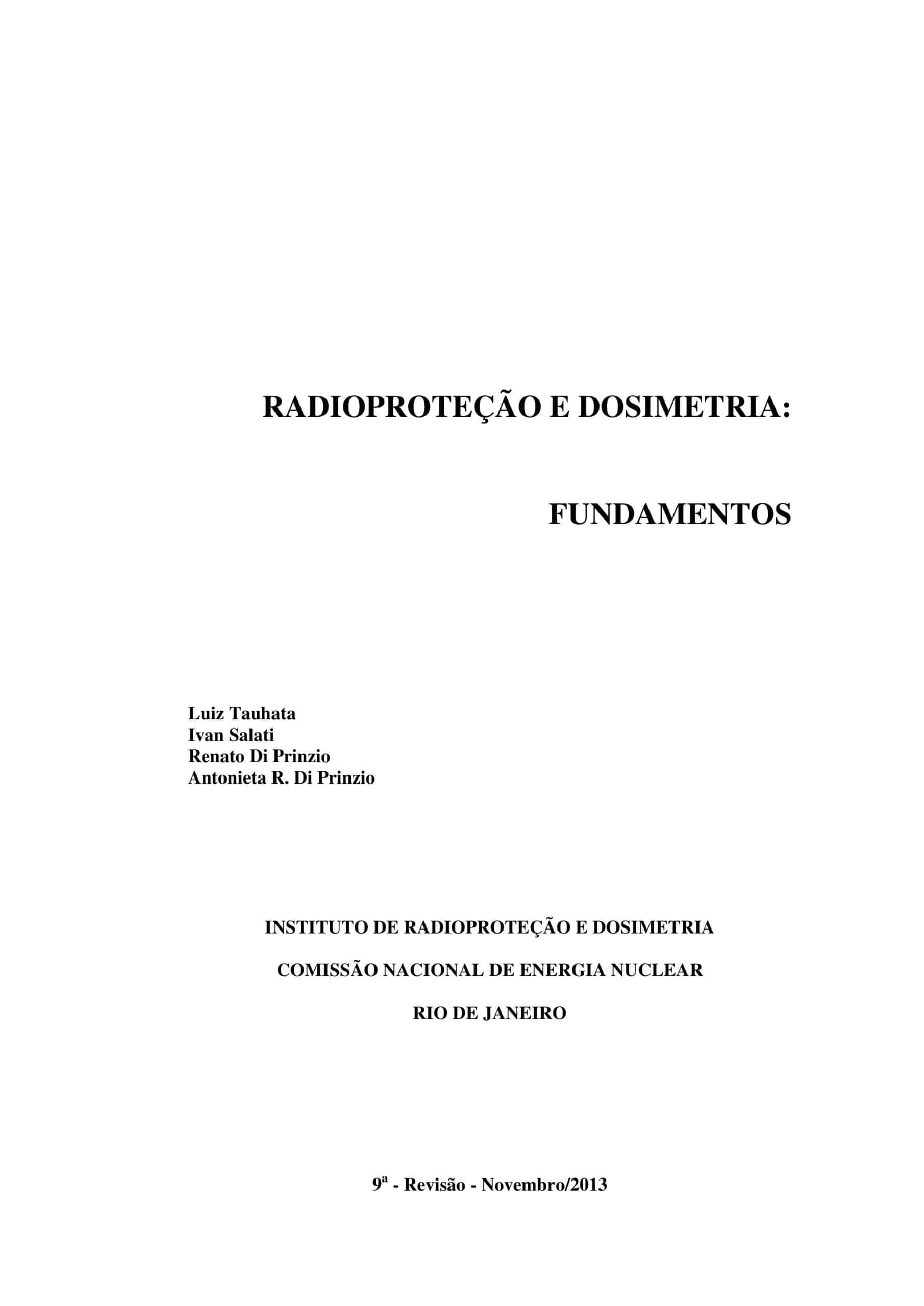 Esta é uma versão revisada da apostila ― Radioproteção e Dosimetria: Fundamentos, preparada para atender aos cursos de treinamento oferecidos pelo Instituto de Radioproteção e Dosimetria – IRD e as pessoas interessadas no assunto.