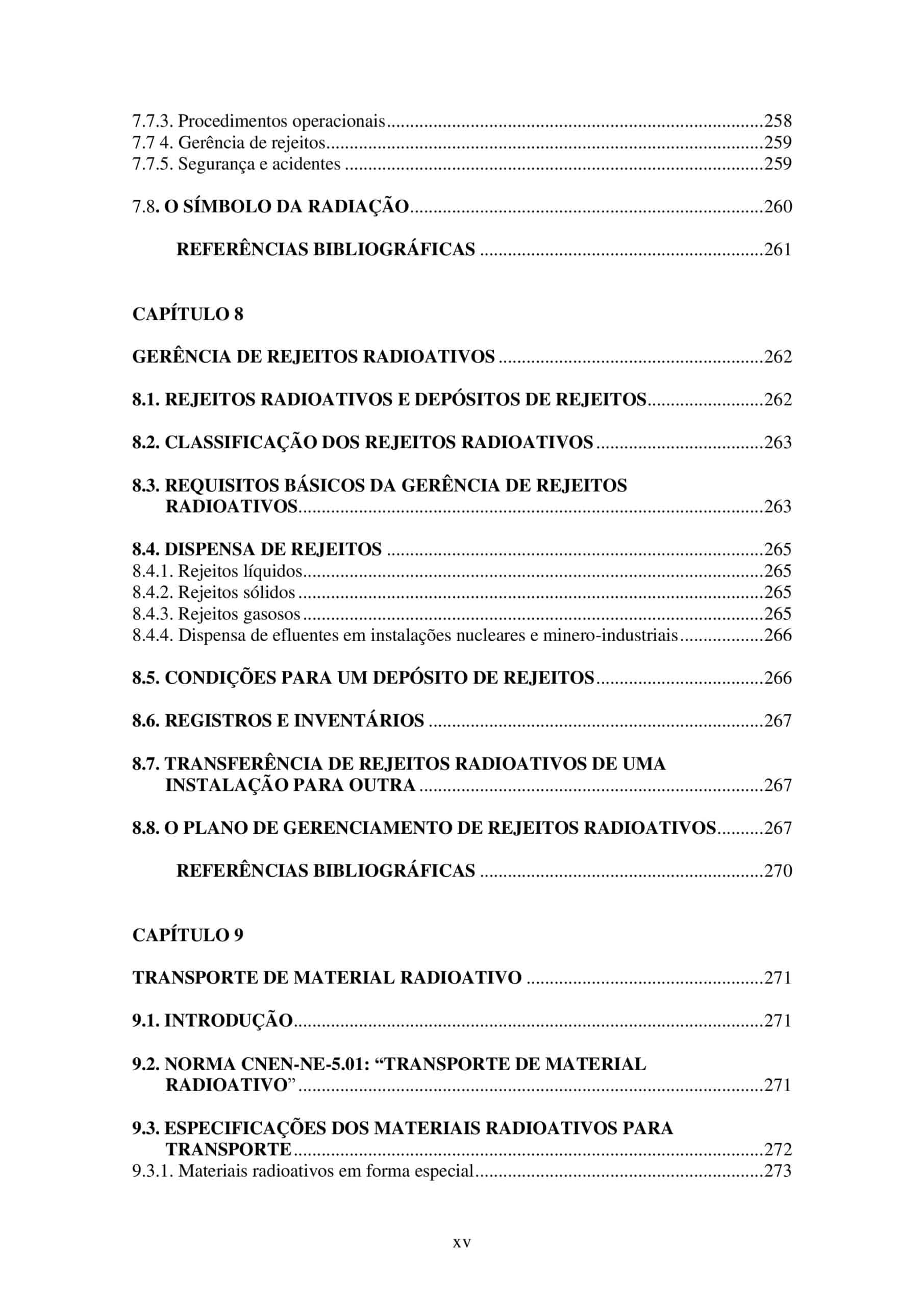 Foram incluídos: um capítulo relacionado à Gerência de Rejeitos, outro relativo ao Transporte de Materiais Radioativos e três anexos sobre: Normas da CNEN, Radiações Ionizantes e Legislação para Trabalhadores e Determinação de Blindagens em Radioterapia.