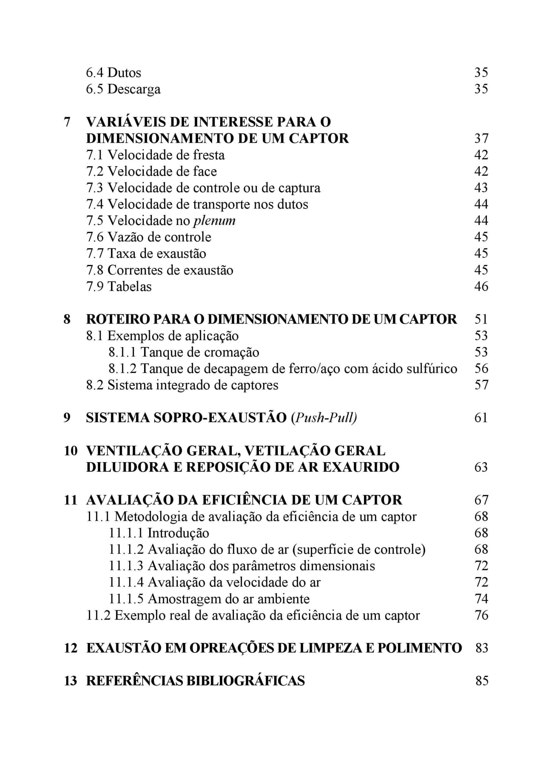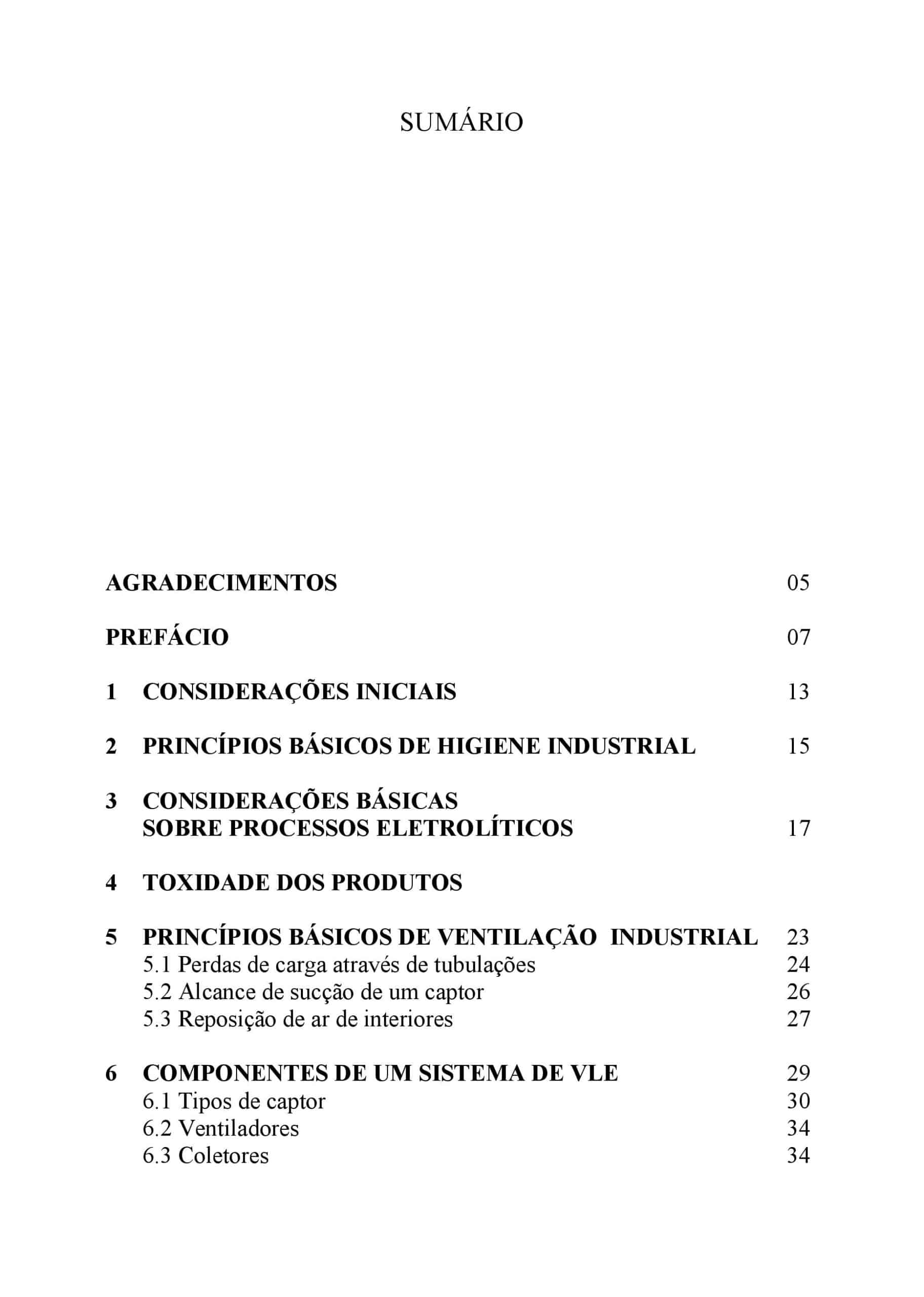 Em resumo, esta publicação fornece subsídios para dimensionamento correto de captores de sistemas de VLE, combinando os fundamentos básicos da Mecânica dos Fluidos com conceitos da Higiene Industrial. É também apresentado um capítulo sobre avaliação de eficiência, para captores já instalados.